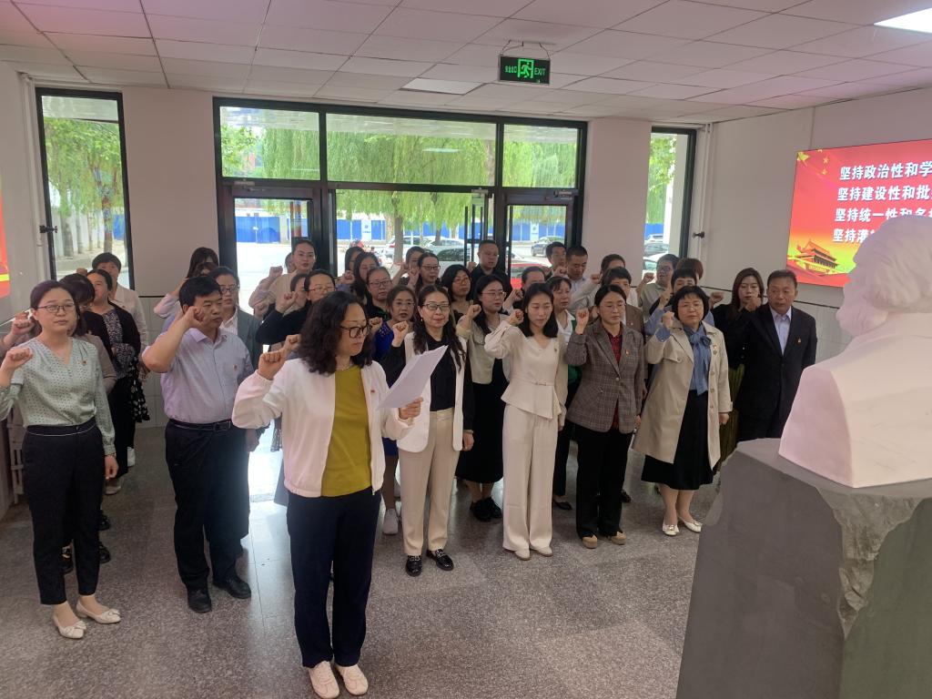 为深入落实学校《“师德师风建设月”活动实施方案》,进一步加强和改进我院师德师风建设,引导广大教师坚定理想信念、厚植爱国情怀、涵养高尚师德。2023年5月10日,我院组织全体教师在马克思雕像前庄严宣誓,严格遵守《保定学院马克思主义学院师德师风守则》。副院长张静茹领誓。