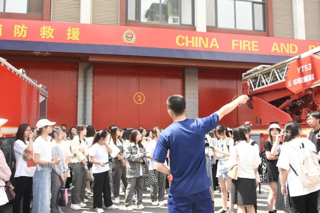 12日上午同学们来到了“行走的思政课堂”的最后一站——莲池区消防救援大队。郑伟红老师为同学们和消防官兵们上了一节生动有趣的思政课,同学们在课程中感受到了消防员战士们英勇斗争、不怕牺牲,甘愿为国家和人民风险的精神,是对“对党忠诚,服务人民,执法公正,纪律严明”十六字方针的生动诠释。接着全体师生参观了消防员战士们通过绳索爬上四层高楼就下欲轻生者的过程,消防员战士矫健英勇的身姿赢得全体师生热烈的掌声。在消防员战士的带领下,全体师生参观了消防车辆和消防设备,并体验了穿戴消防服和护具,在实践中对消防知识有了更深的了解。同学们表示“行走的思政课堂”能使我们走出校园,参与教学实践,对丰富我们的学习内容、开阔我们的视野起到积极作用。