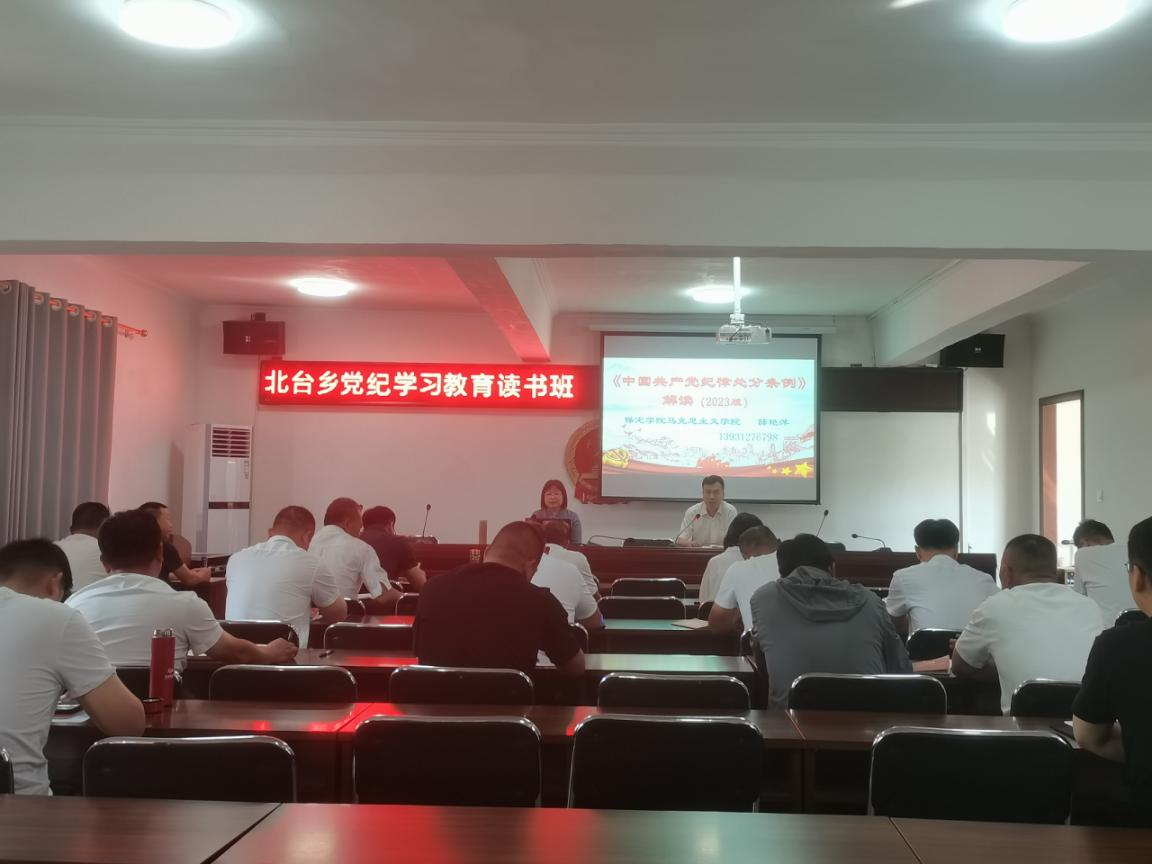 上午,结合正在开展的党纪学习教育,教师支部书记薛艳萍在北台乡政府会议室为北台乡的党员干部授课,深入解读了新修订的《中国共产党纪律处分条例》,从《条例》的重要意义、基本特点、重要内容、施行适用四个方面对《条例》进行了解读,并以“严明政治纪律,做政治清醒的‘明白人’;严明组织纪律,做言行一致的‘老实人’;严明廉洁纪律,做清正廉洁的‘干净人’;严明群众纪律,做为民服务的‘贴心人’;严明工作纪律,做担当实干的‘带头人’;严明生活纪律,做洁身自好的‘高尚人’”与全体学员共勉。