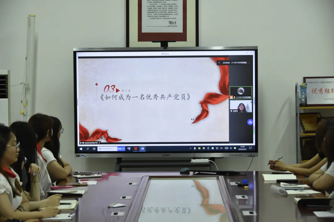 2024年6月21日下午,红旗方阵讲师团在学院会议室开展西柏坡精神宣讲活动,活动采用线上和线下相结合的方式,团总支书记王晨老师及团总支学生会全体成员参会。