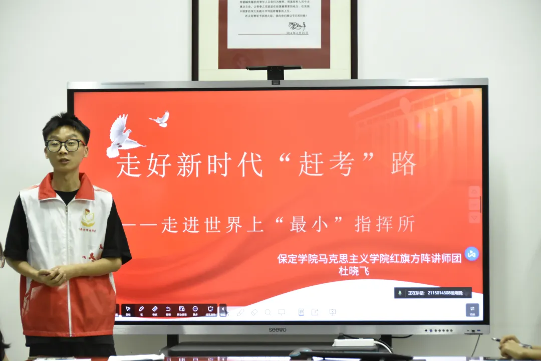 杜晓飞同学从历史和军事的角度,以三大战役为切入点结合自身经历宣讲西柏坡精神。