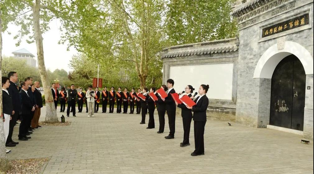 4月16日上午,保定学院第十七届运动会火炬传递启动仪式在直隶第二师范学校老校门(复建)广场举行。