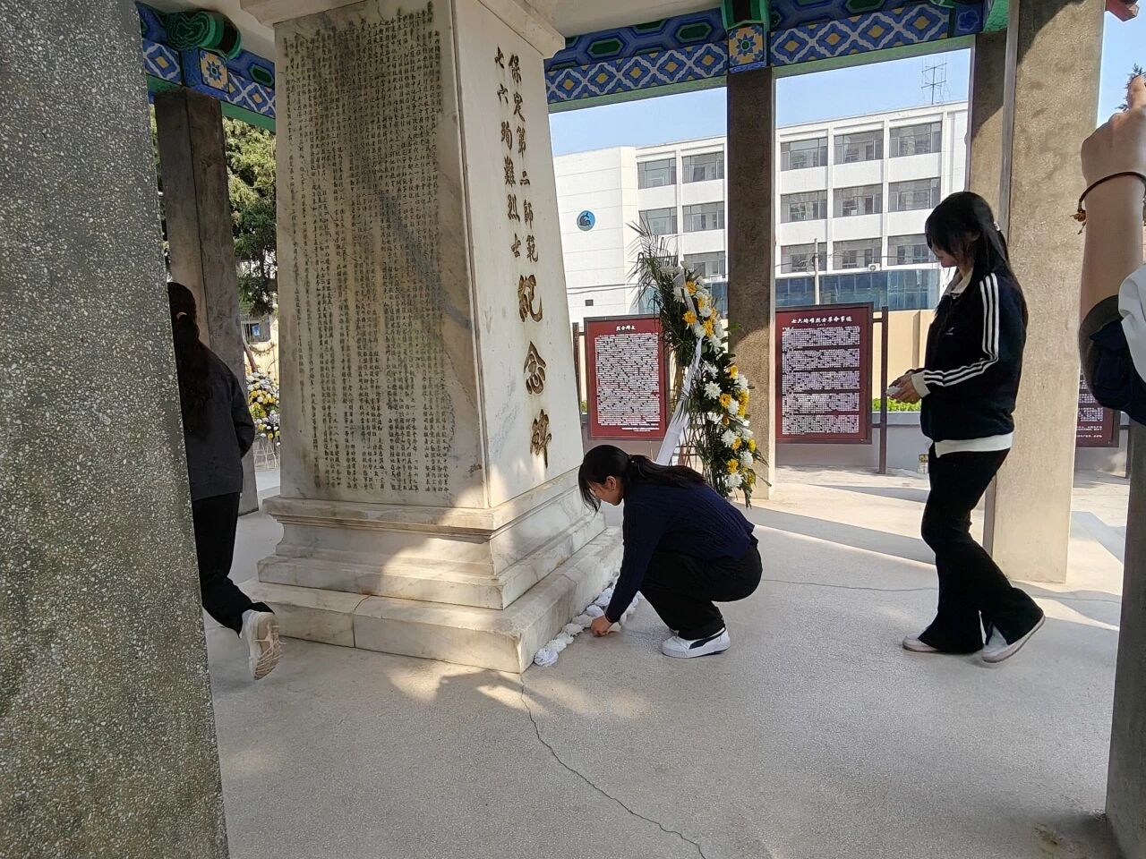活动伊始,师生整齐列队于烈士纪念碑前,主持人宣讲活动流程,学生代表敬献花篮,全体师生鞠躬默哀,铭记先烈用生命铸就的精神丰碑。