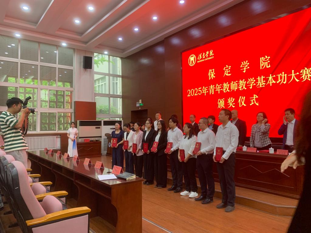 2025年4月30日下午,保定学院2025年青年教师教学基本功大赛颁奖仪式在昌绪学术厅举行。张静茹副院长率我院获奖教师及青年教师参加活动。