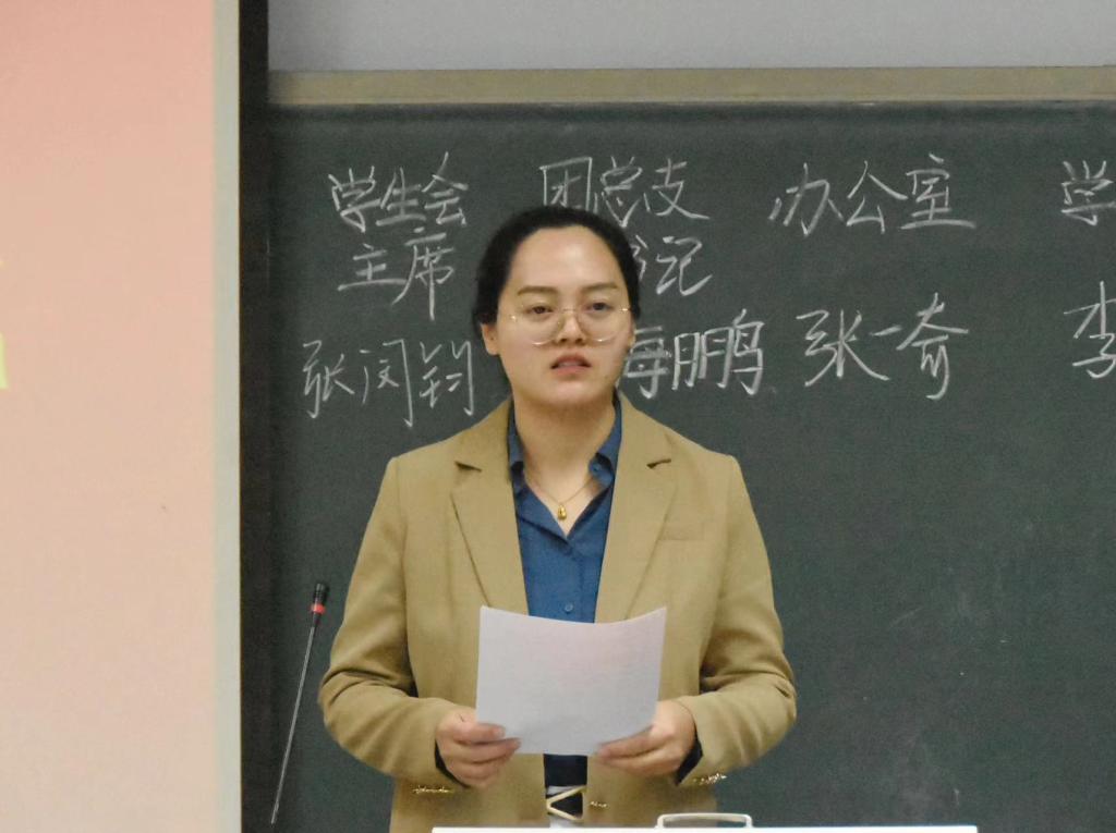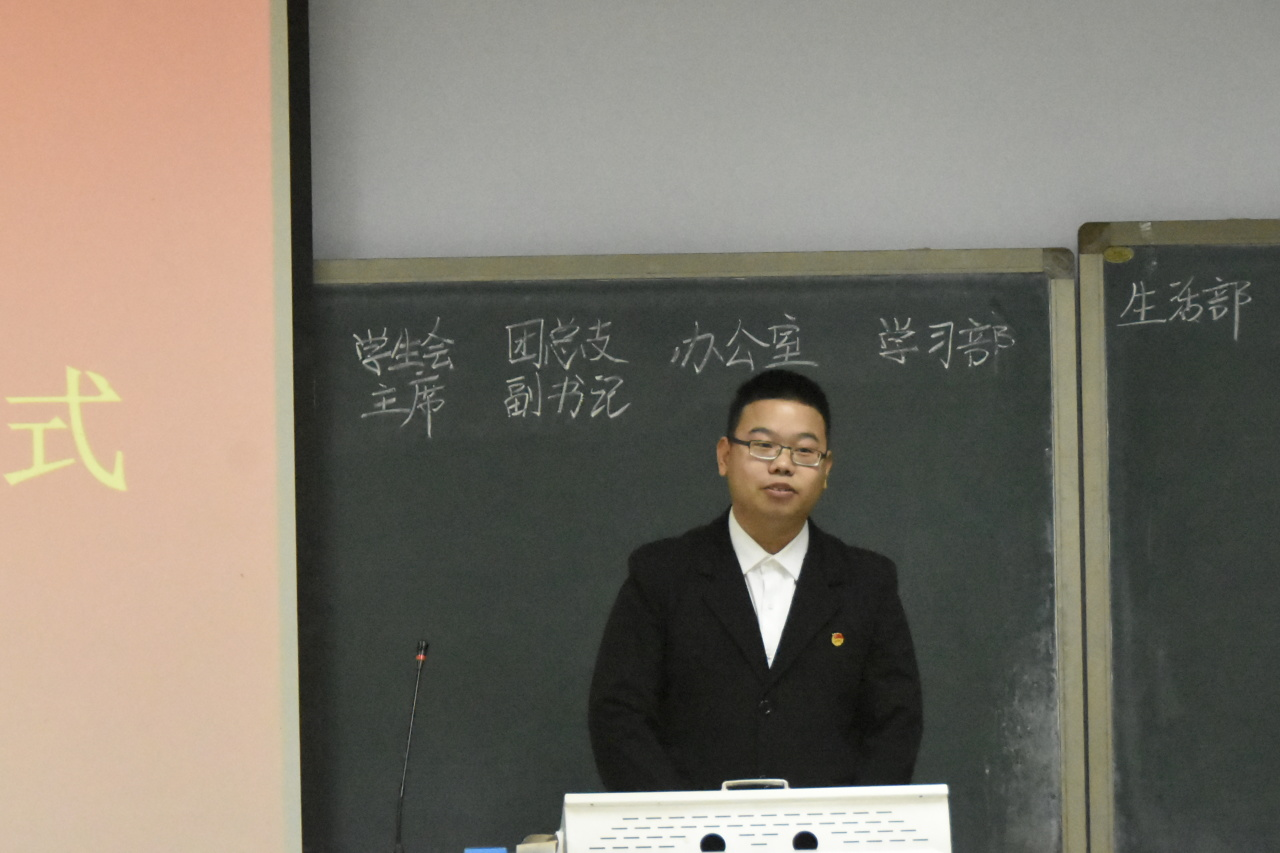 团总支书记王晨老师对上届团学干部的付出表示肯定和感谢,对新一届团学干部提出几点要求:一、迅速转变角色,积极开展工作;二、以身作则,发挥模范带头作用;三、强化服务意识,发挥桥梁纽带作用。