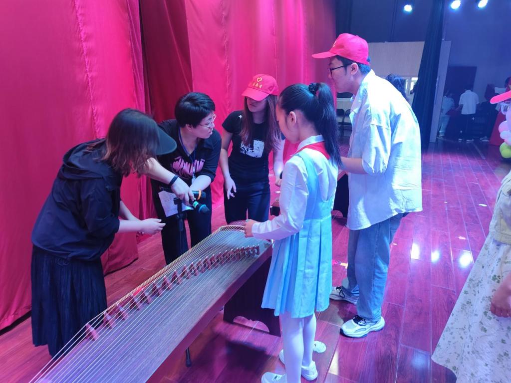 活动当日,志愿者们分工明确。舞台组精心布置场地,器材组有序调配设备,物资组认真整理捐赠物资,全力为孩子们打造温馨的节日舞台。