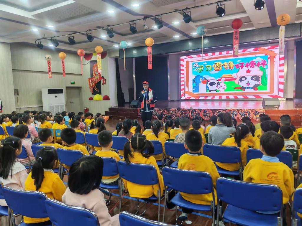 宣讲现场,讲师们化身“故事姐姐”,用童趣化表达与沉浸式互动,为孩子们生动讲述雷锋缝补衣物、助人为乐、勤俭节约等暖心事迹,让雷锋精神的种子深深植入童心。